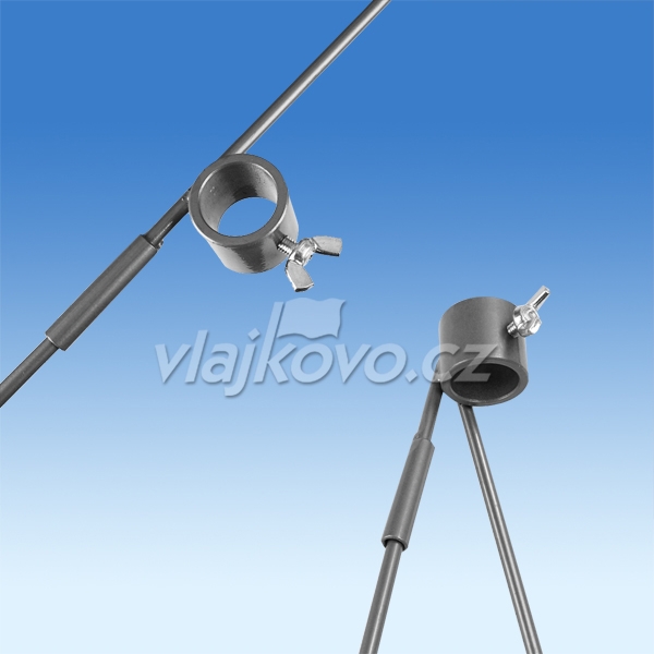 Držák pod vlajku je vyroben z barvených trubic stříbrné barvy.
